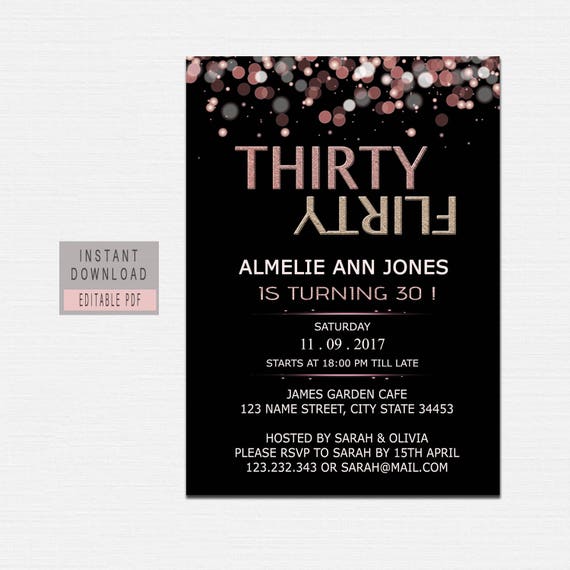 Dirty 30 30th Birthday Invitation Editable Birthday Invite Template Edit and Print Yourself SomethingBeautifulDS 5 out of 5 stars 90 Sale Price 960 960 1200 Original Price 1200 20 off Add to Favorites Rose Gold 30th Birthday. This listing is for a design you instantly download edit yourself and print at home or your favorite printer. Browse our 30th Birthday Invitations customize your favorite and email or print from our website.